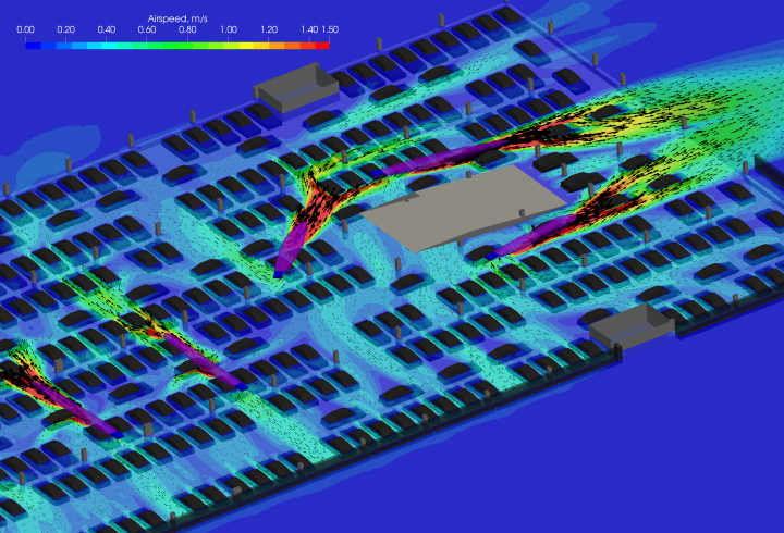 CFD analysis for car parks is required to demonstrate that the proposed design is effective at removing pollution on a day to day basis or controlling and clearing smoke in the event of a fire. CFD analysis projects can include any of the acceptable methods to satisfy building regulations including natural ventilation, assisted natural ventilation and full mechanical ventilation systems.
